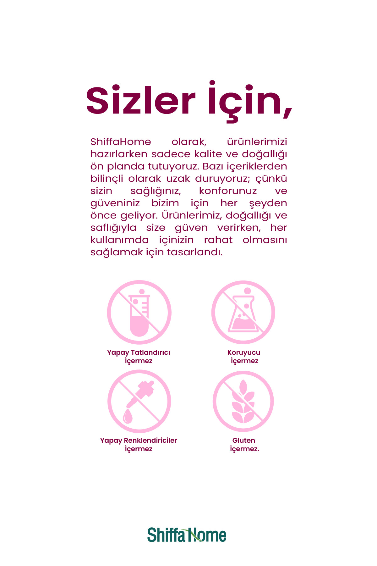 - Doğal İçerikler: Zararlı katkı maddeleri içermeyen, doğal içeriklere dayanan formülümüzle güvenle kullanabilirsiniz.