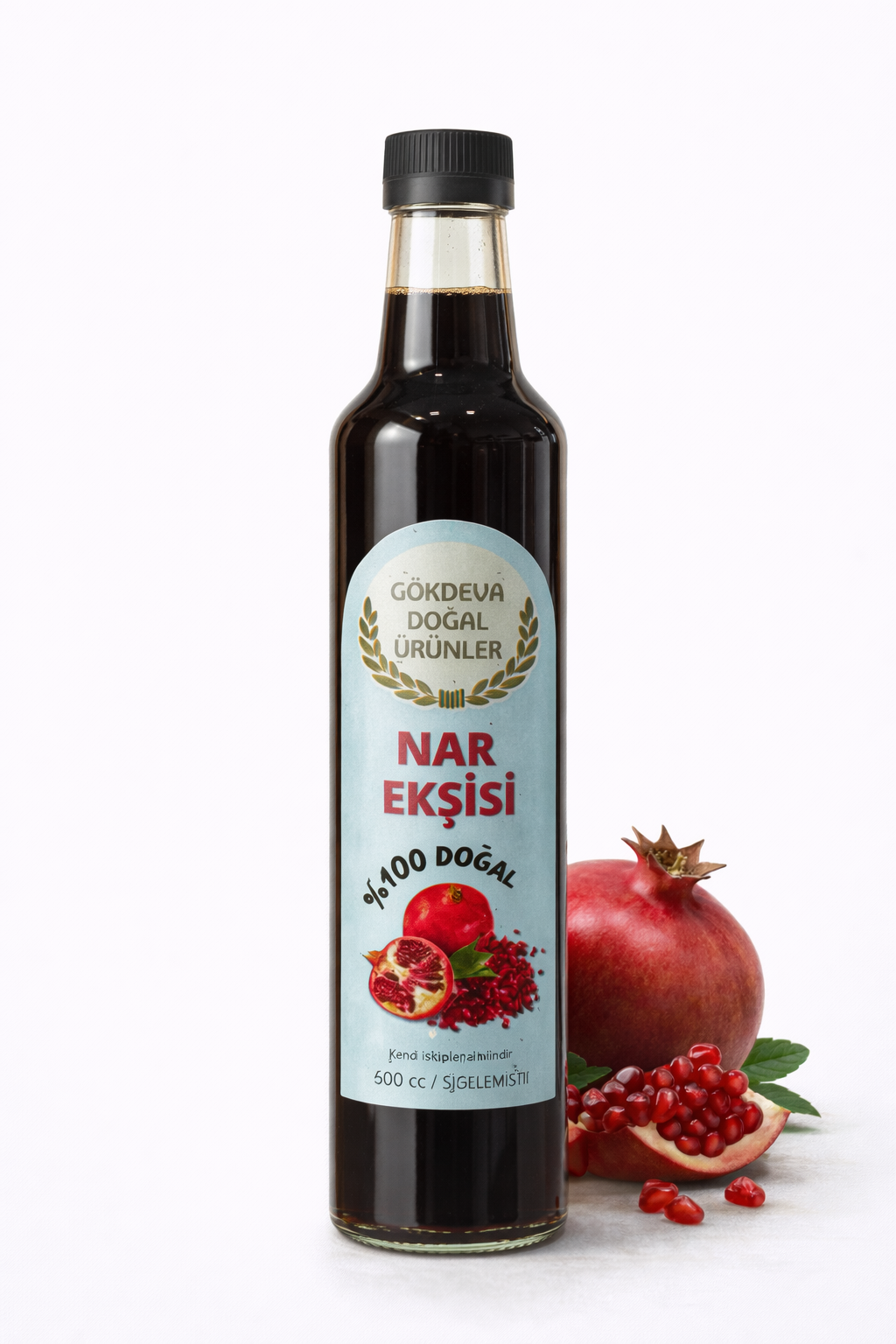 El yapımı nar ekşisi, olgun ve aroması yüksek narların geleneksel yöntemlerle kaynatılıp yoğunlaştırılmasıyla hazırlanmıştır. Ürünümüzde ilave şeker, glikoz, renklendirici ve koruyucu madde bulunmaz. Doğal kıvamı, koyu rengi ve ekşi-tatlı dengesiyle gerçek nar ekşisi lezzeti sunar.