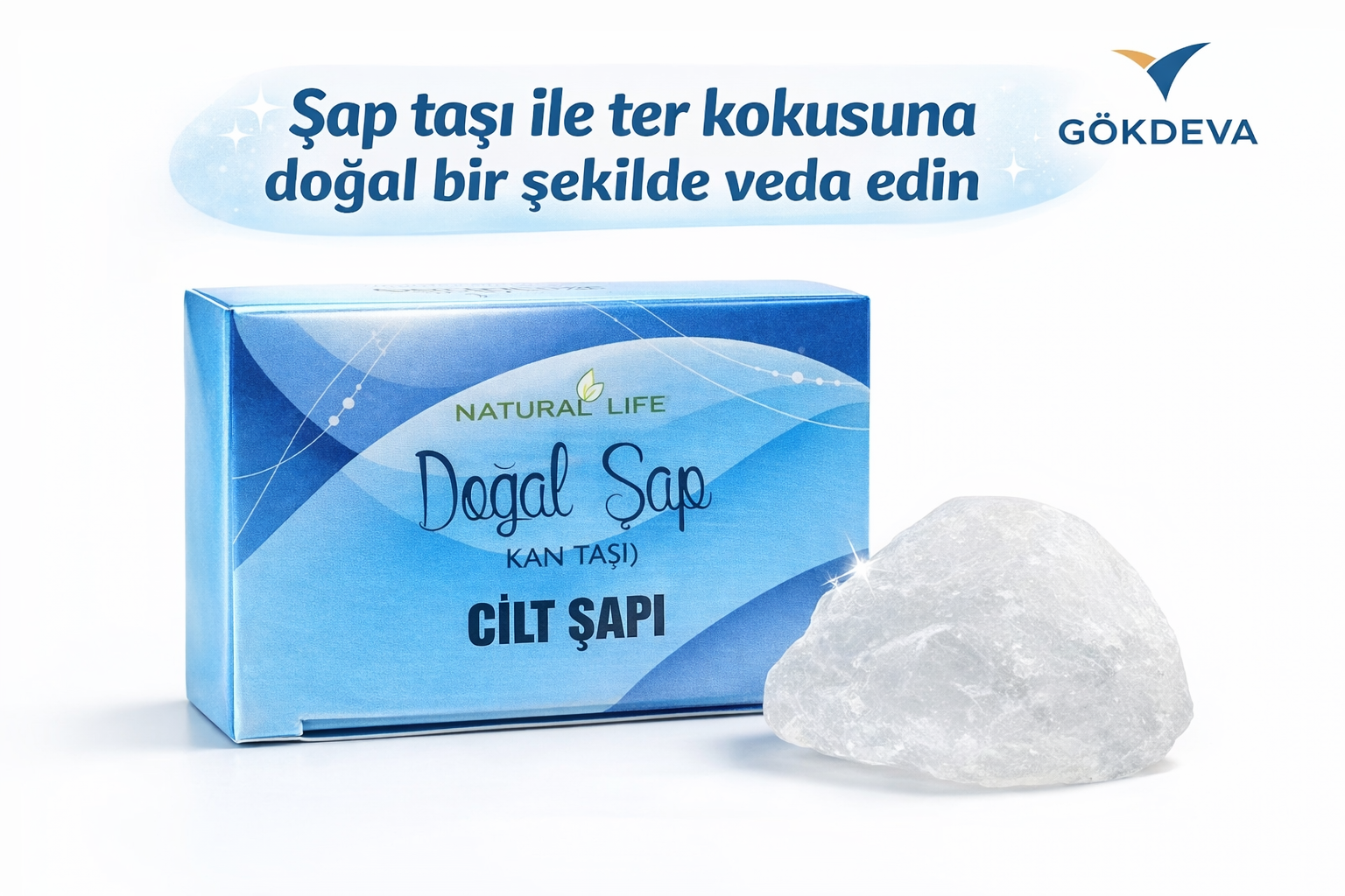 Doğal şap taşı, ter kokusuna karşı yüzyıllardır kullanılan tamamen doğal bir mineraldir. Cilt üzerinde gözenekleri kapatmadan, kokuya neden olan bakterilerin oluşumunu azaltmaya yardımcı olur. Parfüm, alkol ve kimyasal katkı içermez.