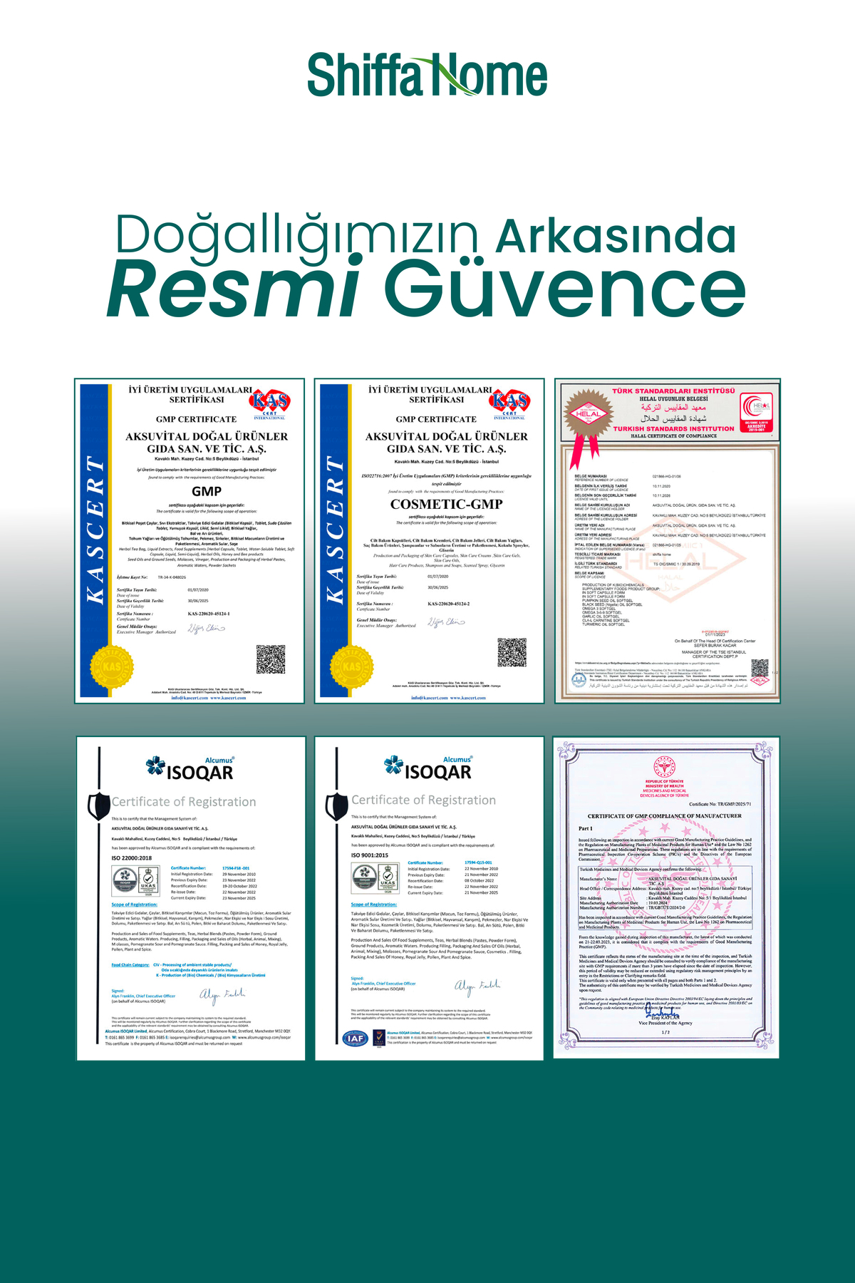 Ürünlerde Helal sertifikalı bitkisel kapsüller ve sığır jelatini menşeili softjeller kullanılmaktadır.