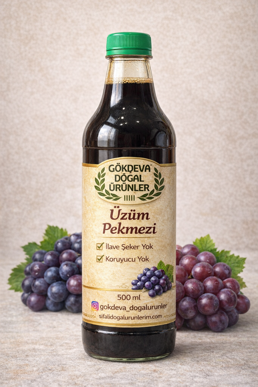 Üzüm pekmezi, yerli ve olgun üzümlerden geleneksel yöntemlerle hazırlanmıştır. Ürünümüzde ilave şeker, katkı maddesi ve koruyucu bulunmaz. Doğal yapısı korunarak elde edilen üzüm pekmezi, yoğun kıvamı ve kendine özgü aromasıyla öne çıkar.